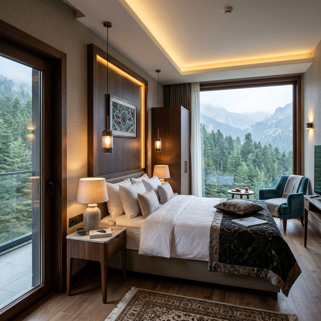 Borhan Termal Otel'in eşsiz doğası, lüks odaları ve termal havuzlarından kareler.
